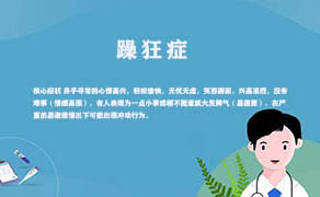 以情感高涨或易激惹为主要临床相,伴随精力旺盛、言语增多、活动增多,严重时伴有幻觉、妄想、紧张症状等精神病性症状。